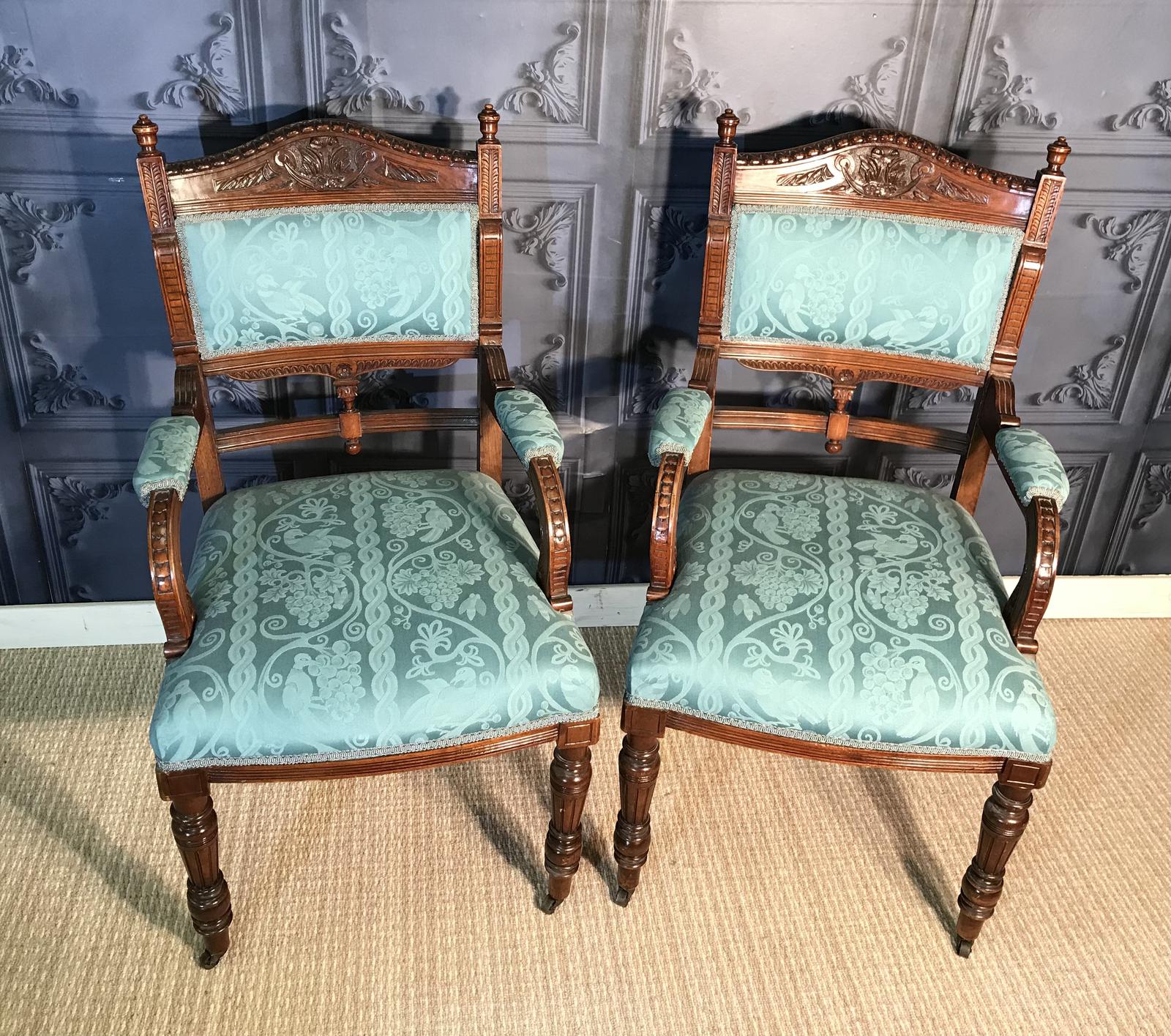 Pair of Victorian Walnut Armchairs