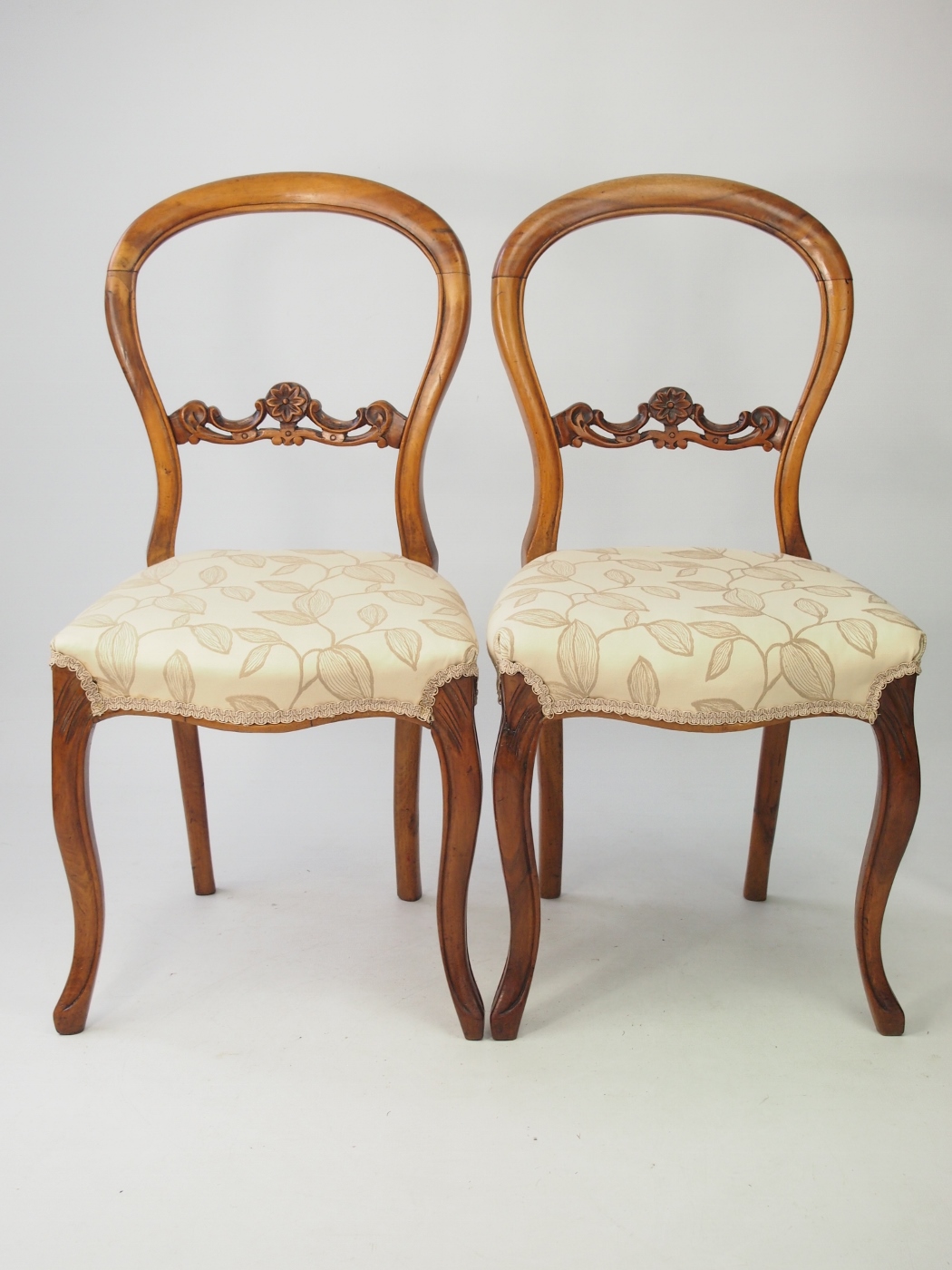 Pair of Victorian Walnut Balloon Back Chairs c.1890