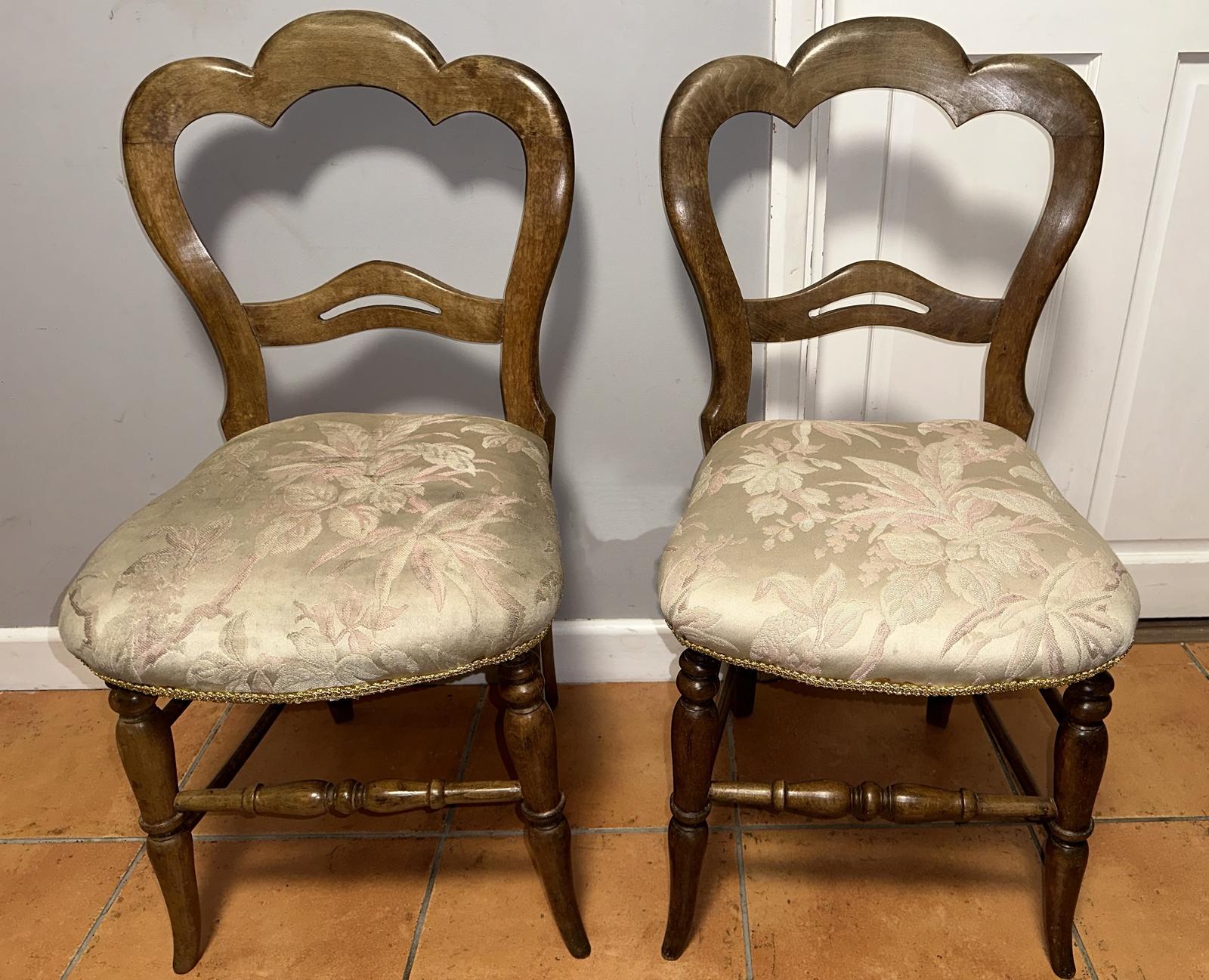 Pair of Victorian Walnut Balloon Back Dining Chairs