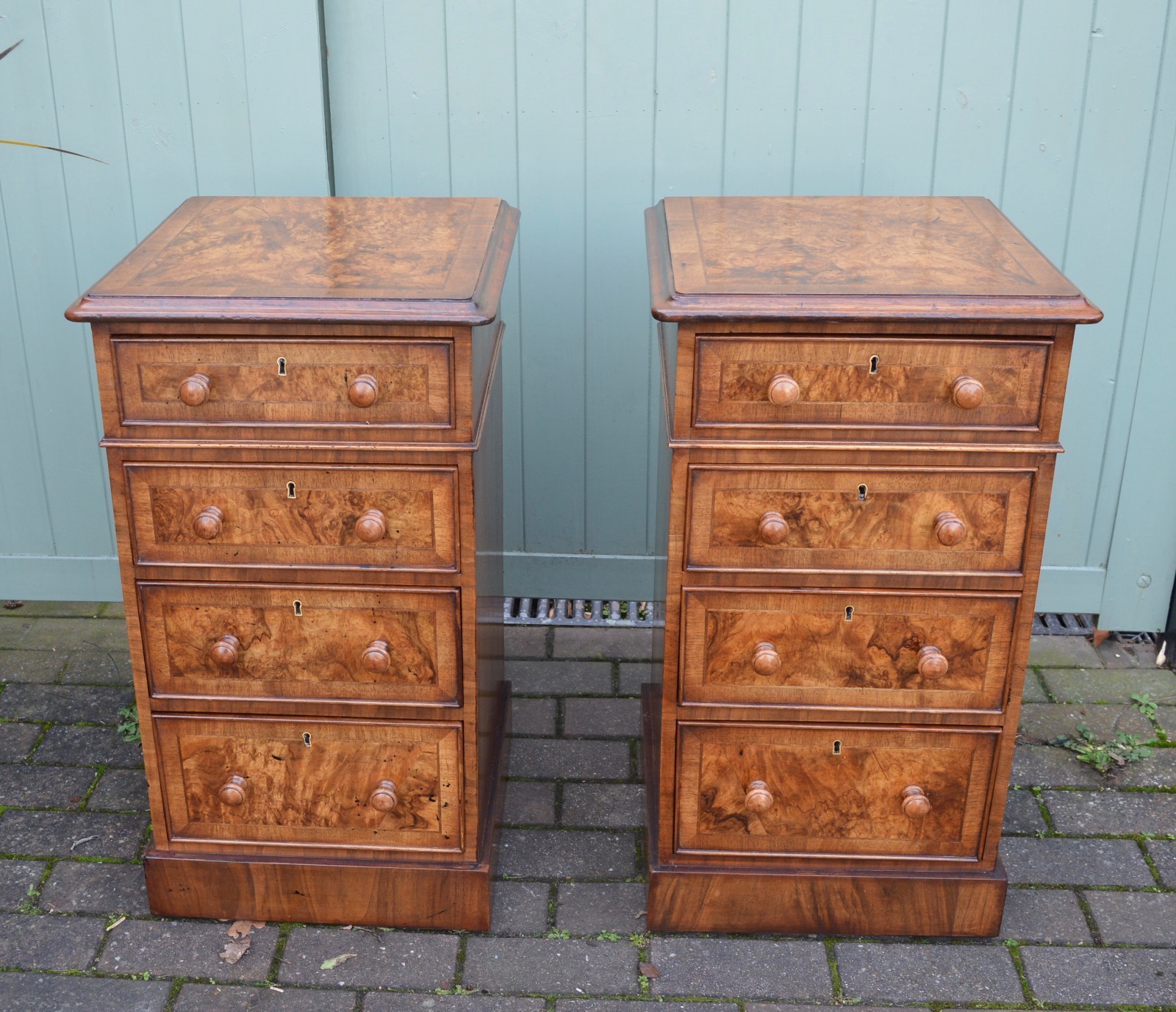 Pair of Victorian Walnut Bedside Chests of Drawers c.1870 (1 of 1)