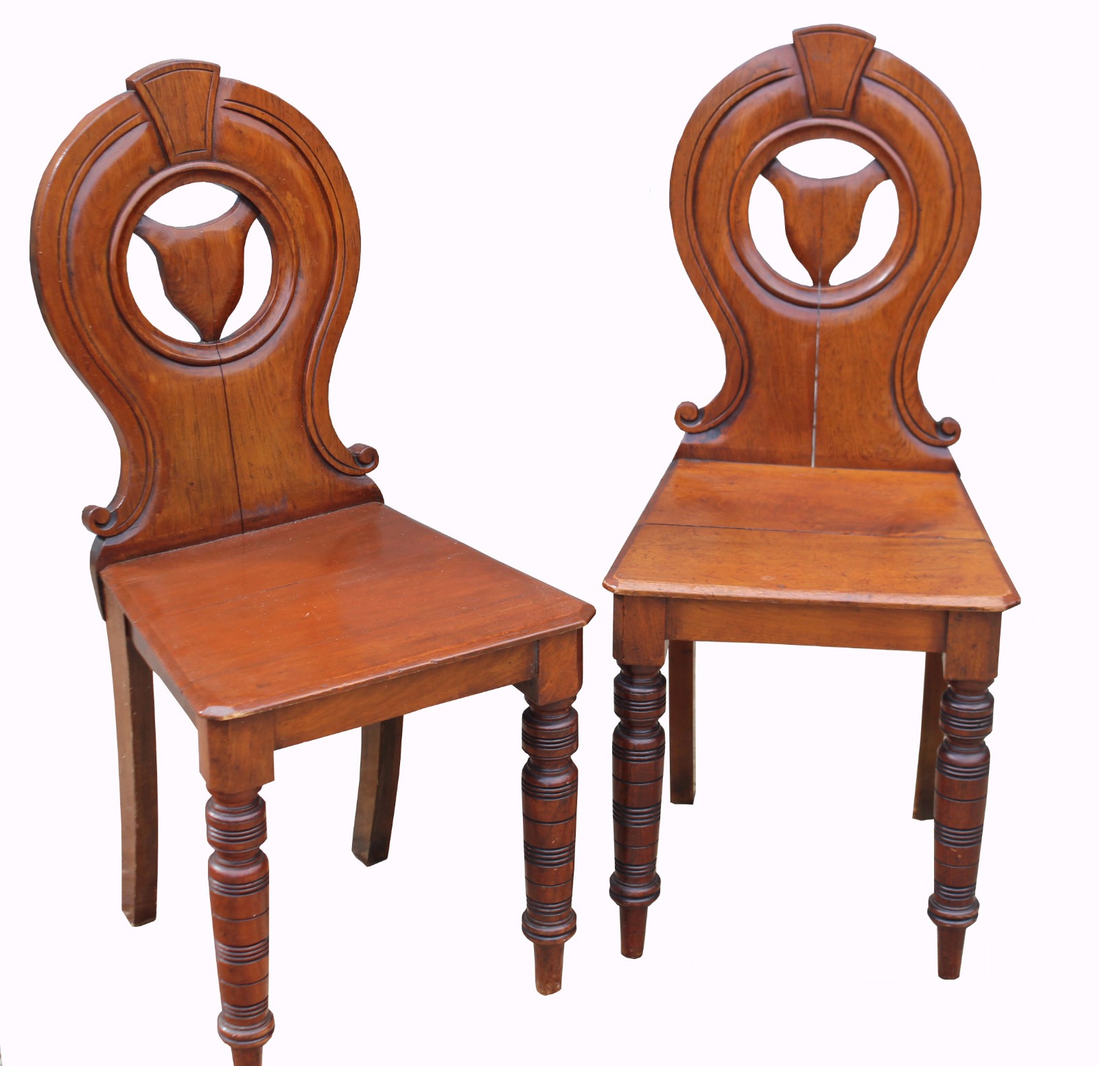 Pair of Victorian Walnut Hall Chairs