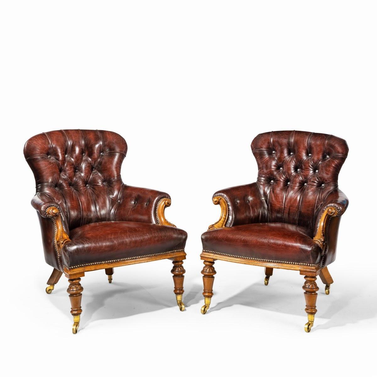 Pair of Victorian Walnut Library Armchairs (1 of 5)