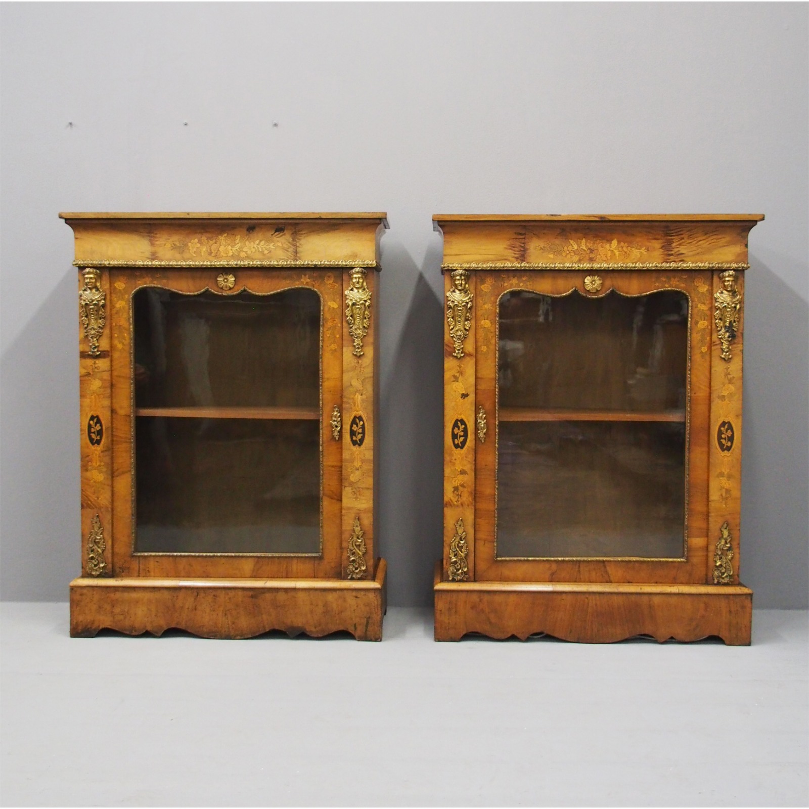 Pair of Victorian Walnut Marquetry Inlaid Pier Cabinets (1 of 11)