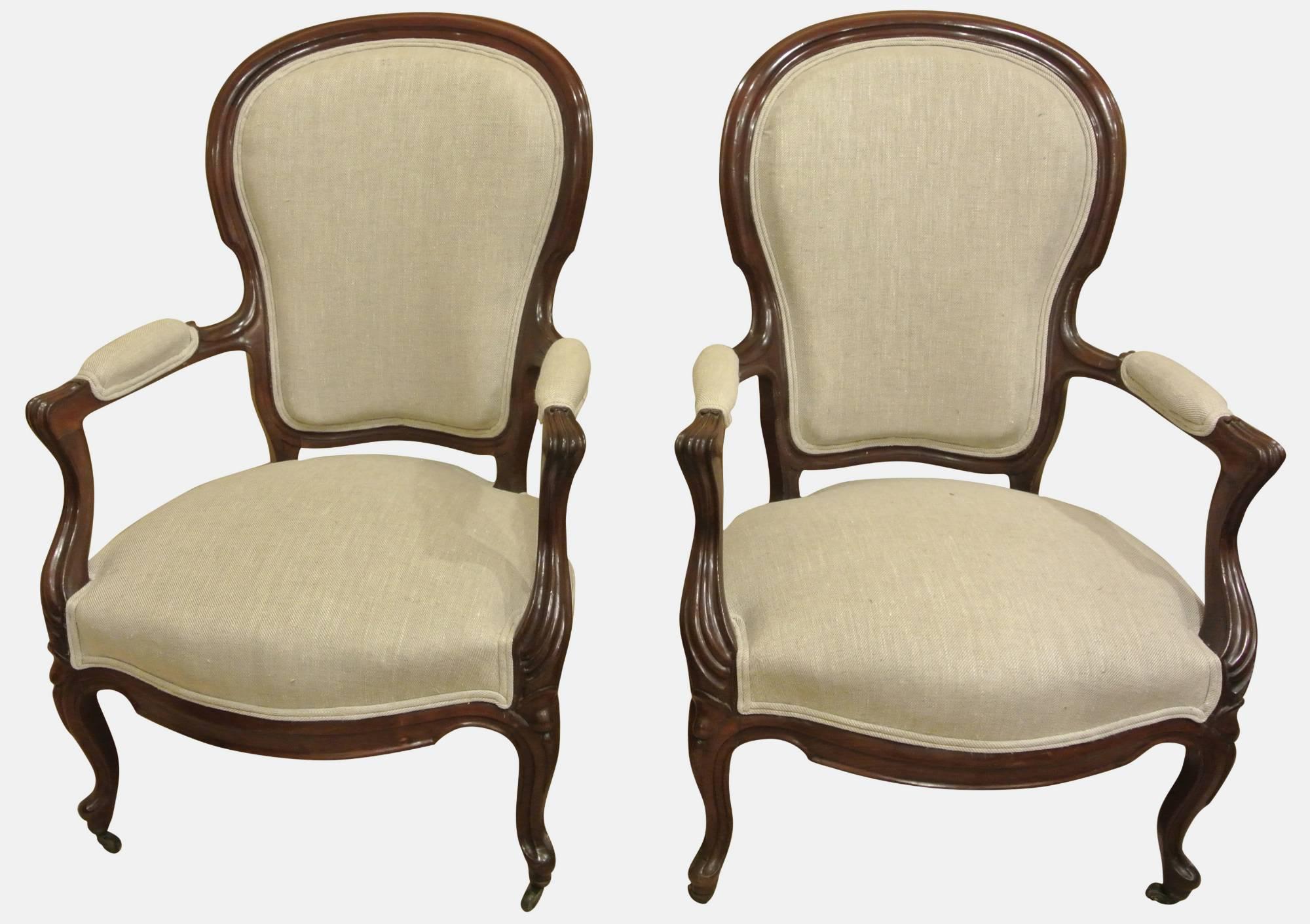 Pair of Victorian Walnut Open Armchairs c.1890 (1 of 1)