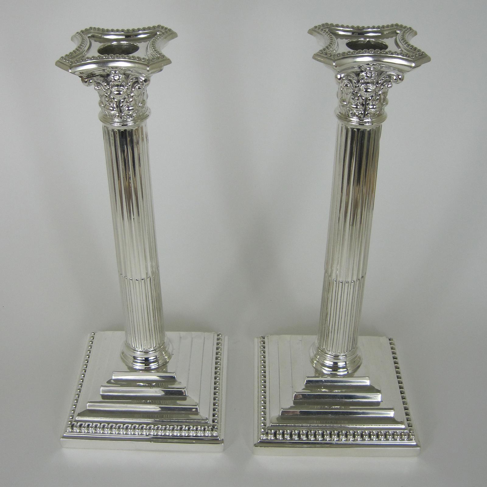 Pair of Victorian William Hutton & Son Silver Plated Corinthian Column Candle Sticks (1 of 8)