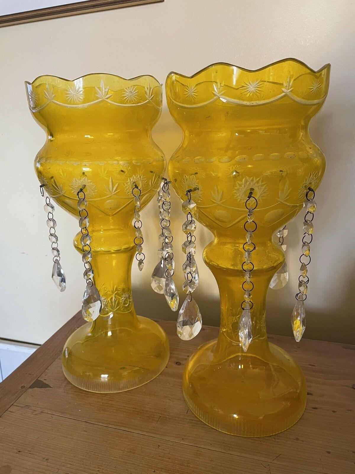 Pair of Victorian Yellow Glass Lutres