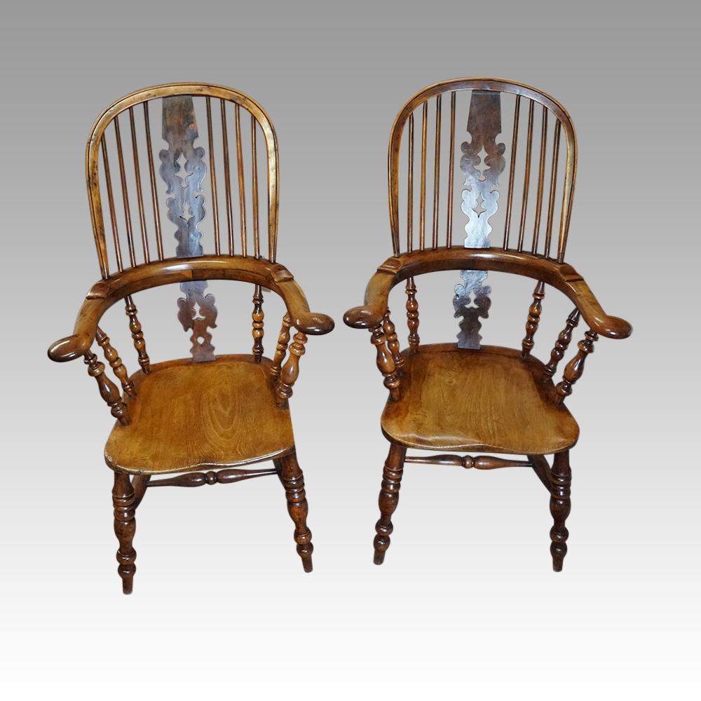 Pair of Victorian Yew Broad Arm Windsor Chairs (1 of 12)