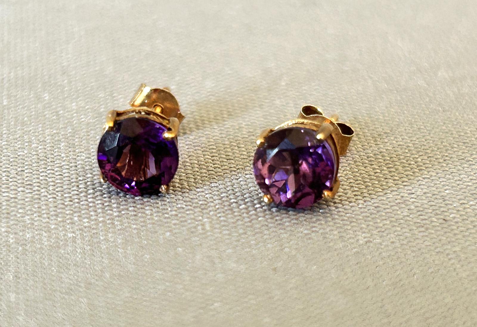 Pair of Vintage 9ct Gold and Amethyst Stud Earrings (1 of 6)