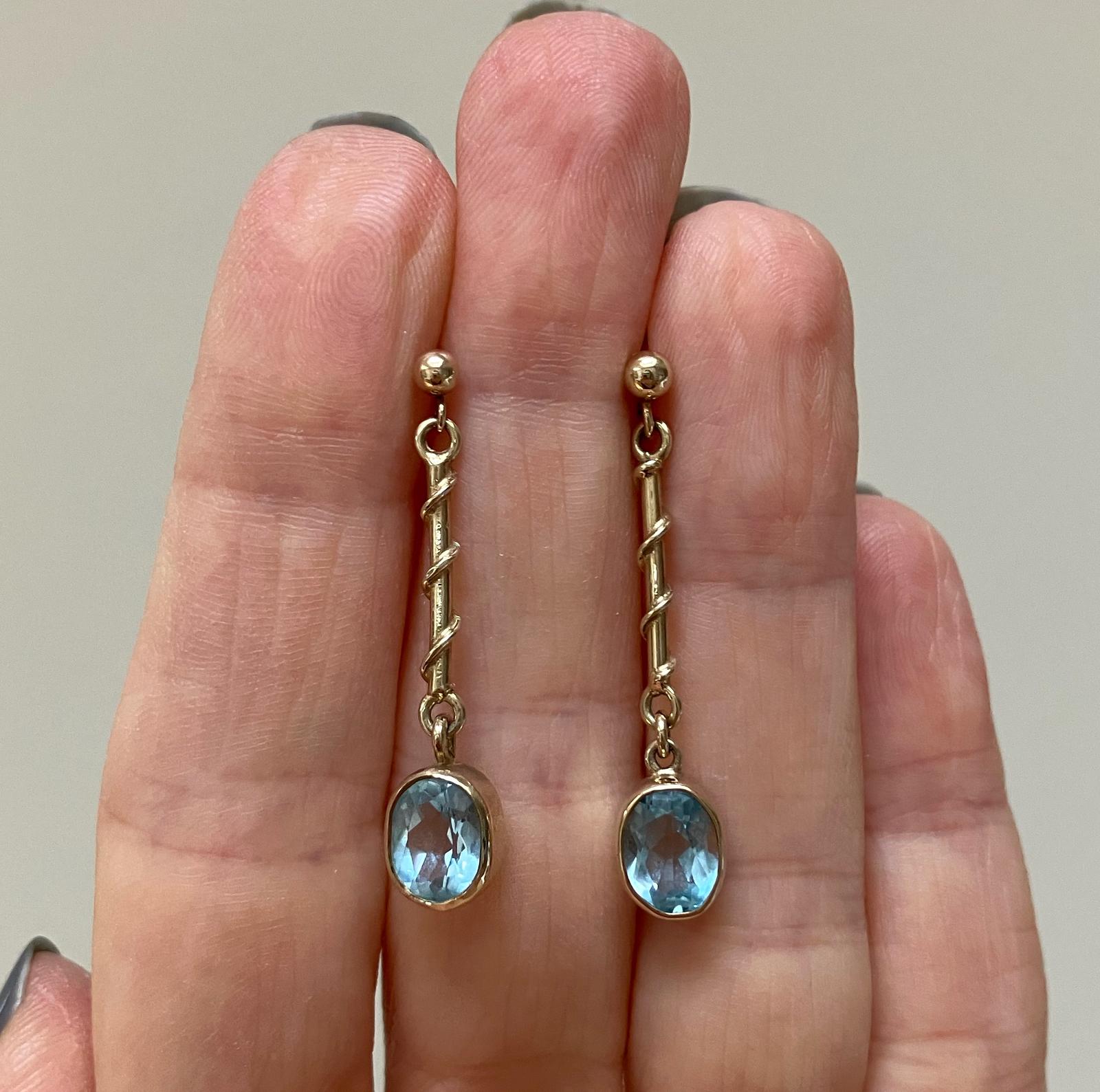 Pair Of Vintage 9ct Gold Topaz Drop Earrings