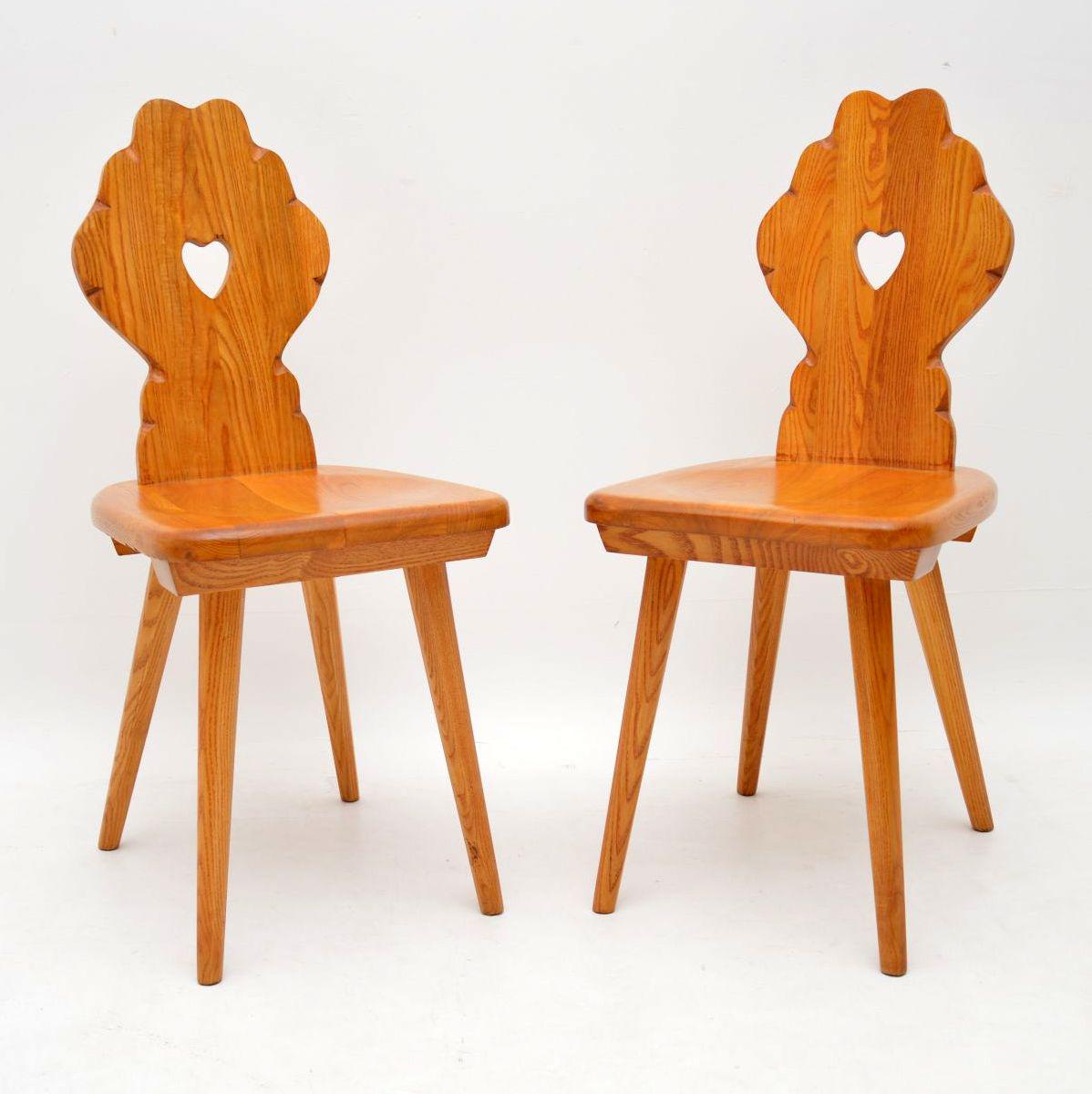 Pair of Vintage Alpine Side Chairs in Solid Elm