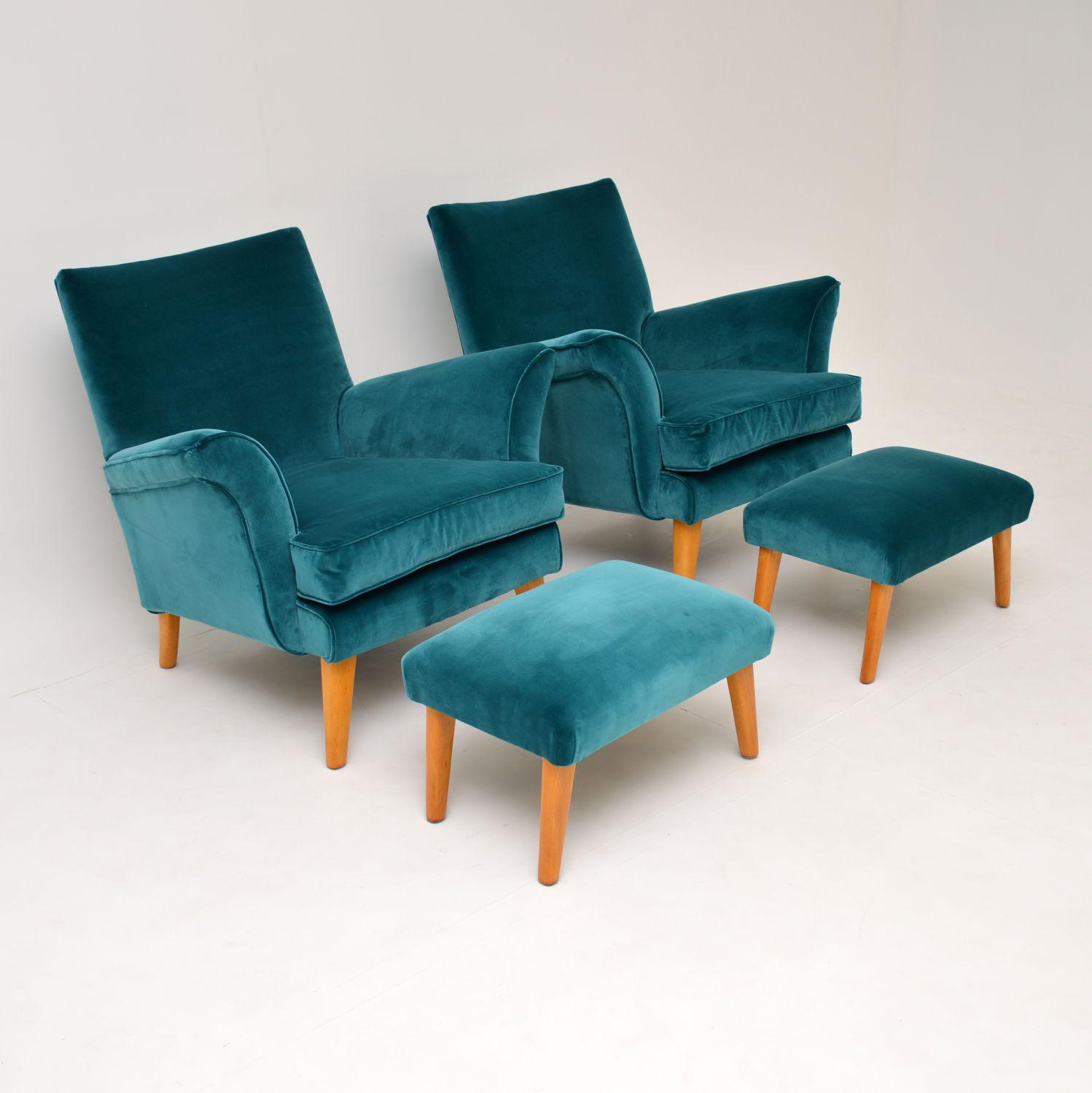 Pair of Vintage Armchairs & Ottomans c.1960’s