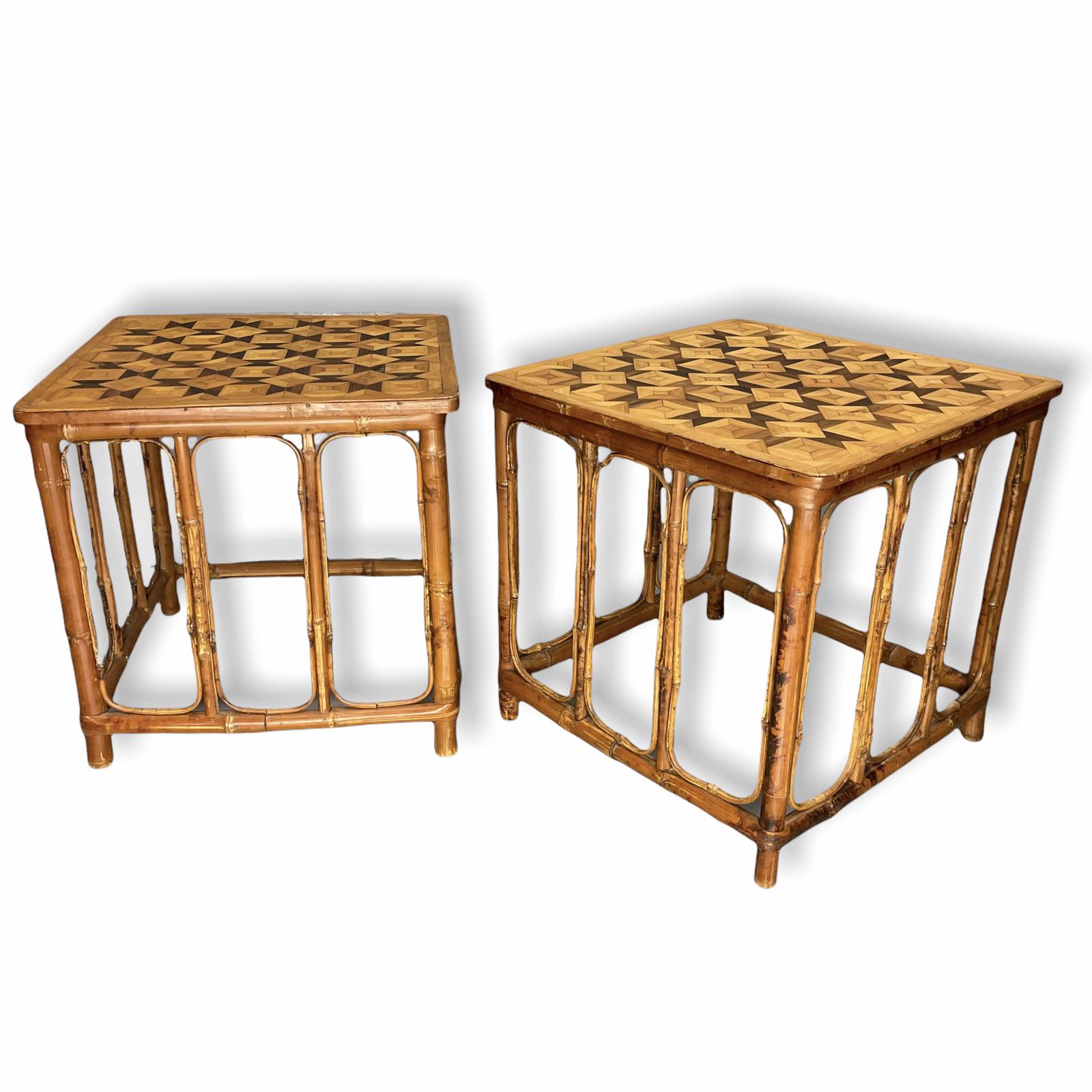 Pair of Vintage Bamboo & Parquetry Side Tables