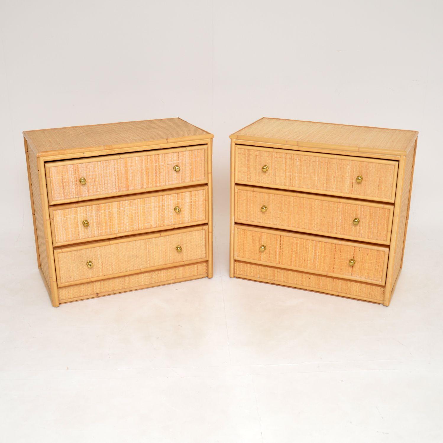 Pair of Vintage Bamboo Rattan Chest of Drawers