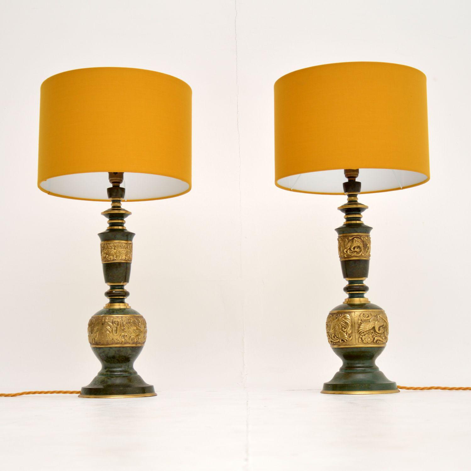 Pair of Vintage Brass & Enamel Table Lamps (1 of 13)
