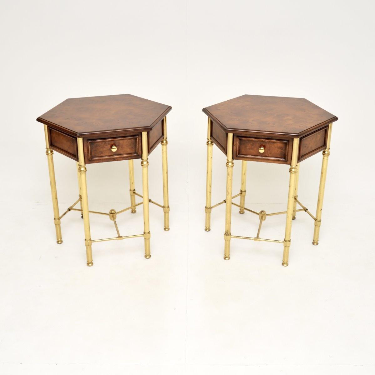Pair of Vintage Burr Walnut & Brass Side Tables (1 of 13)