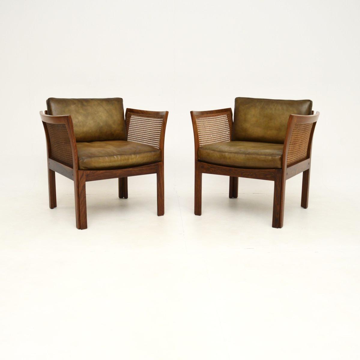 Pair of Vintage Danish Rosewood & Leather Armchairs by Illum Wikkelso