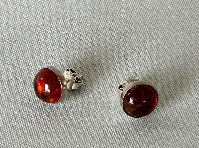 Pair of Vintage Danish Silver & Amber Stud Earrings