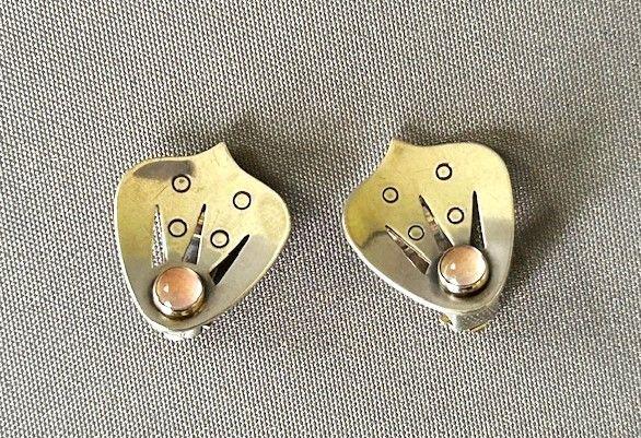 Pair of Vintage Danish Silver & Rose Quartz Earrings