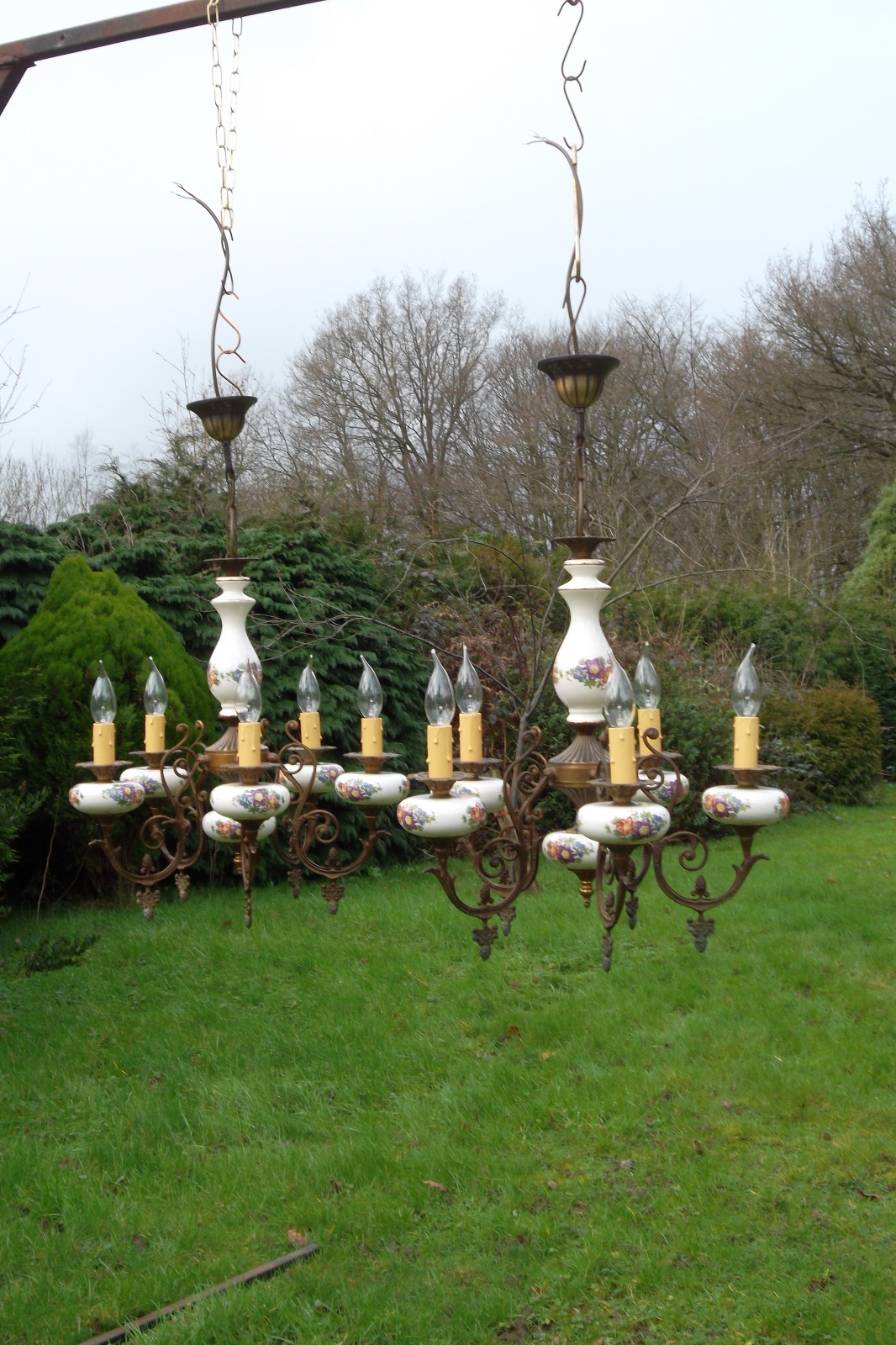 Pair of Vintage French 5 Arm Porcelain Chandeliers