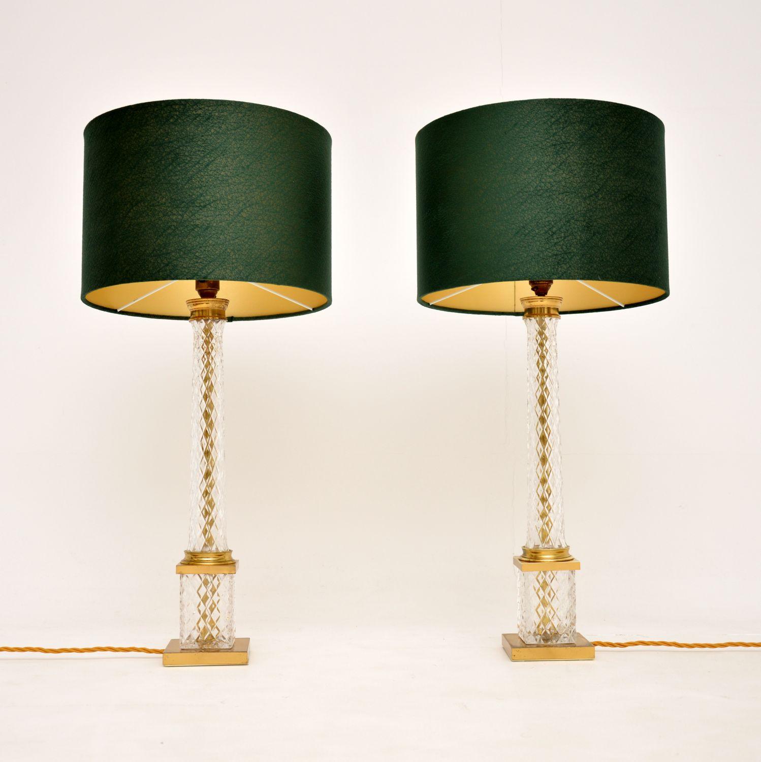 Pair of Vintage French Crystal Glass & Brass Table Lamps (1 of 9)