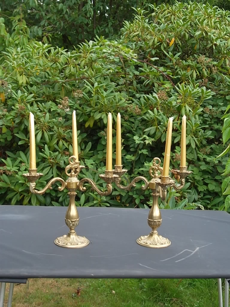 Pair of Vintage French Heavy Bronze 1960s Candlesticks