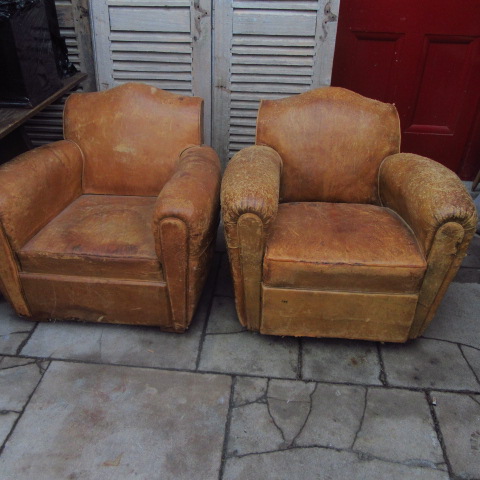 Pair of Vintage French Leather Club Chairs