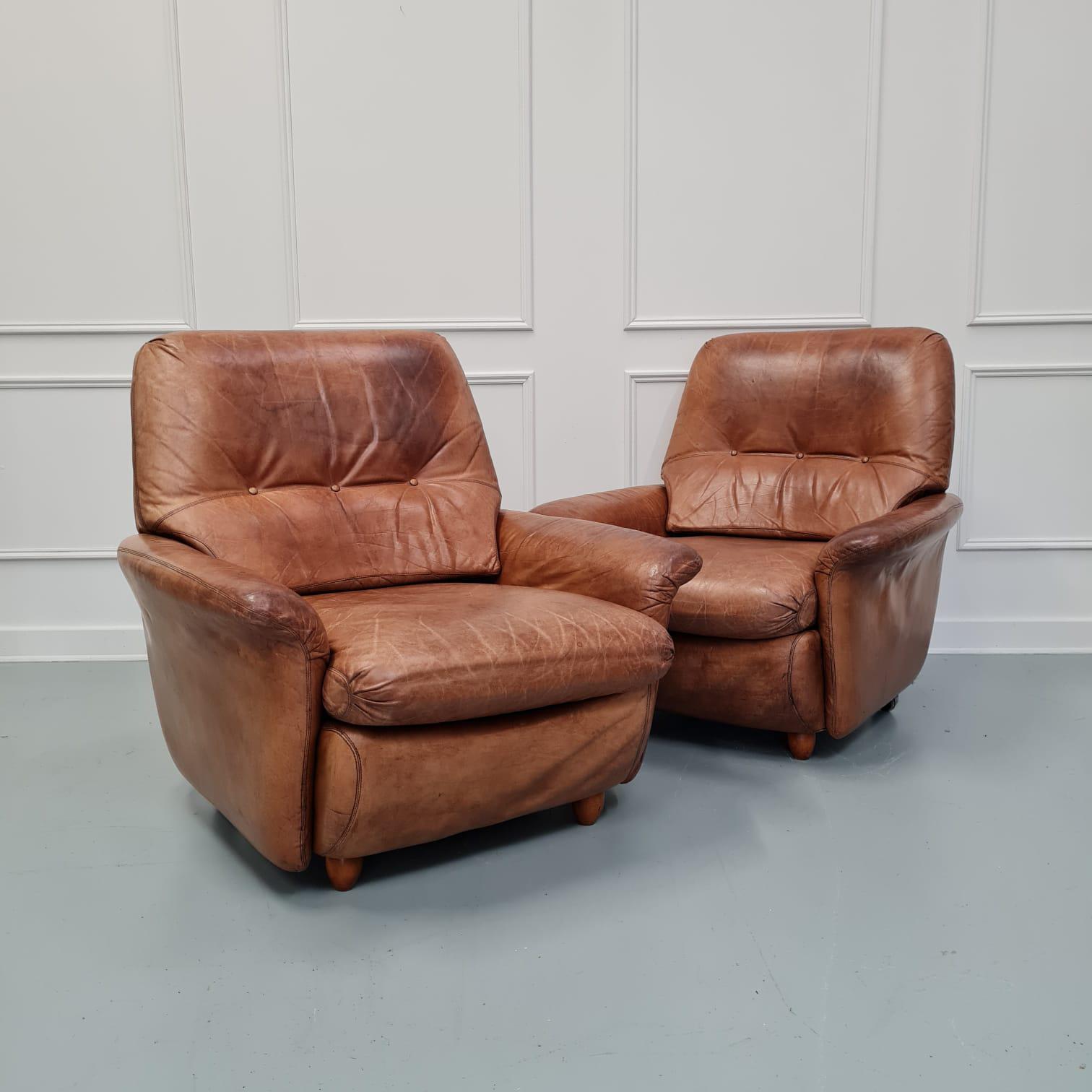 Pair of Vintage French Leather Guermonprez Armchairs c.1970