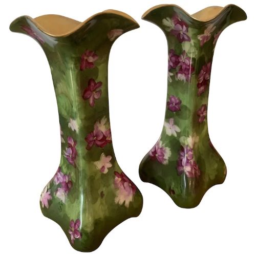 Pair of Vintage Hand Painted Limoges Vases