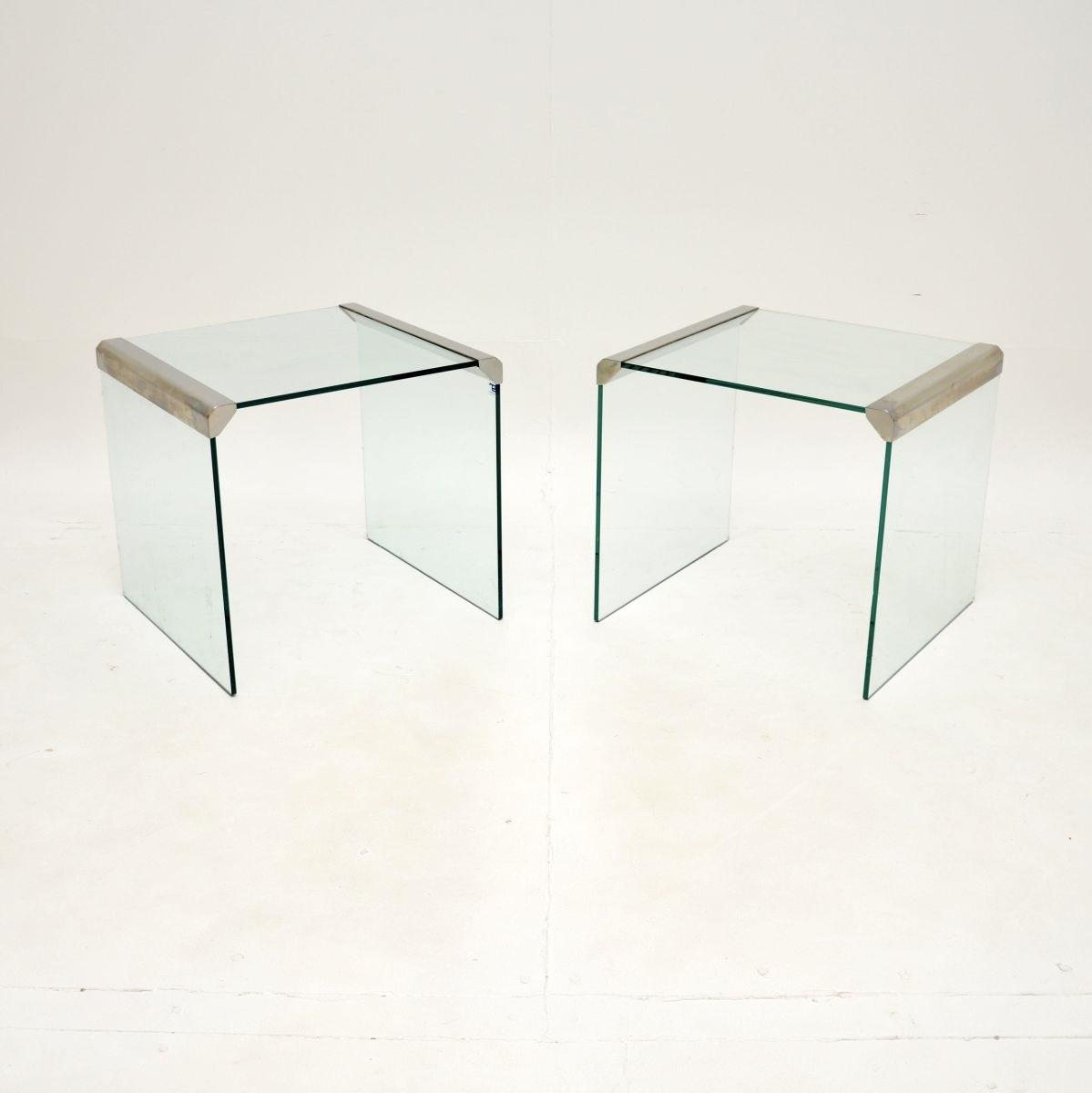 Pair of Vintage Italian Glass & Chrome Side Tables by Gallotti & Radice