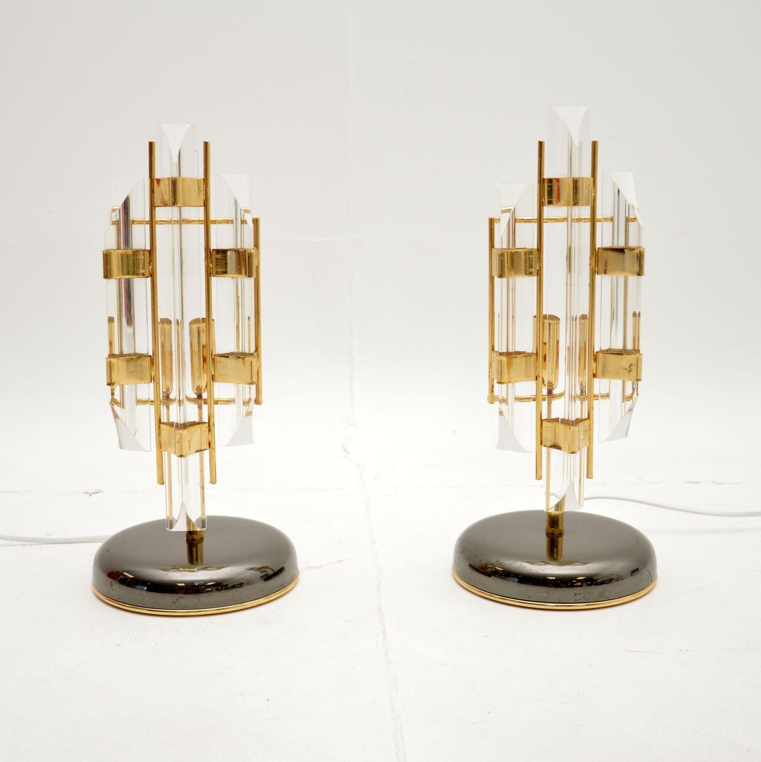 Pair of Vintage Italian Murano Glass and Brass Table Lamps