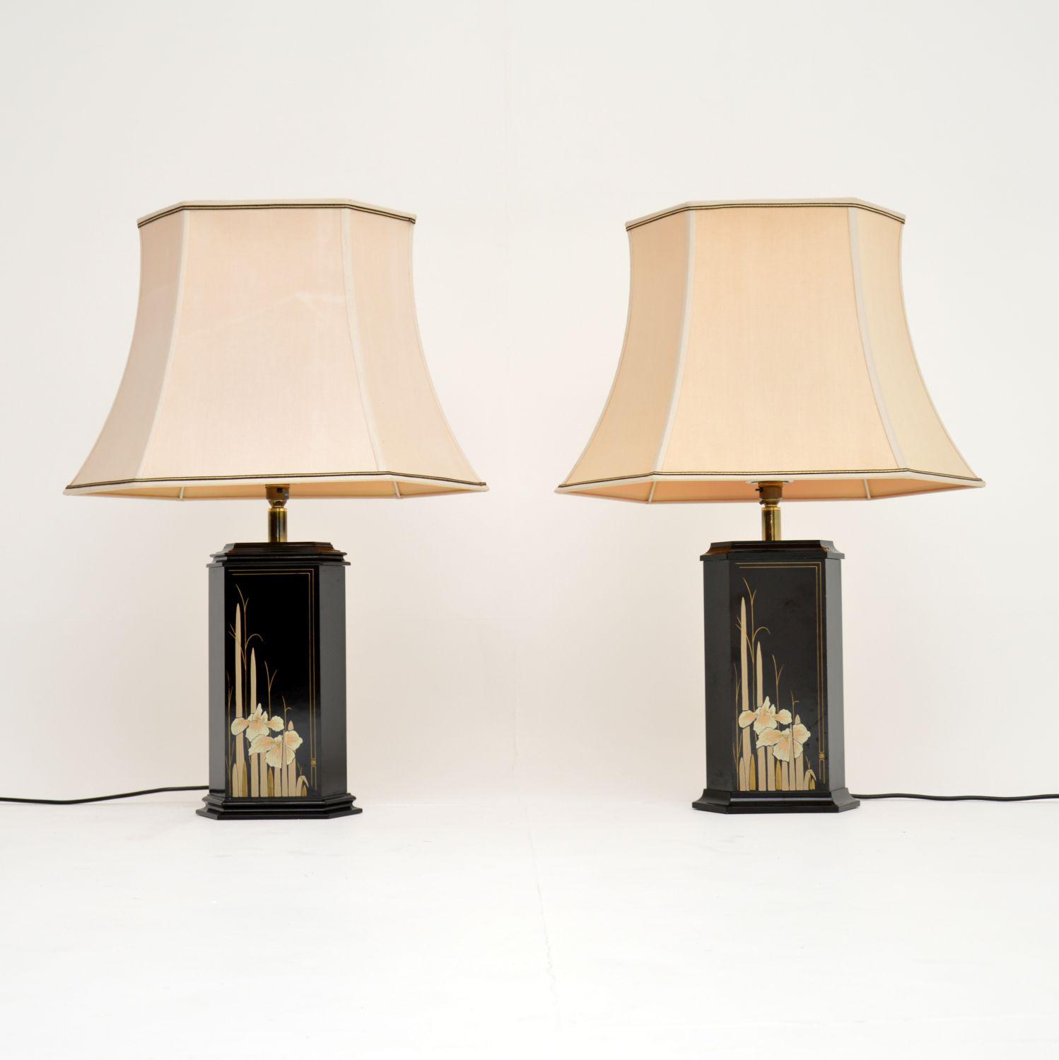 Pair of Vintage Lacquered Chinoiserie & Brass Table Lamps