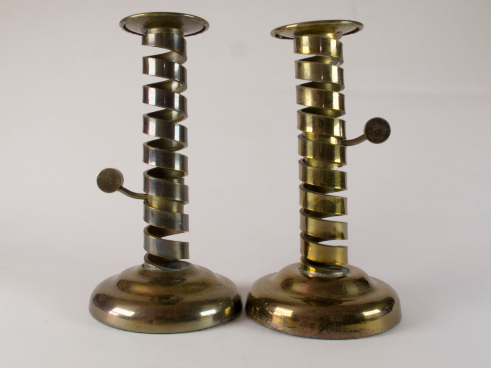 Pair of Vintage Laurence Butler Brass Spiral Ejector Candlesticks