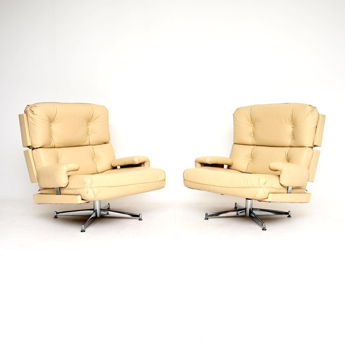 A magnificent pair of vintage leather and chrome ‘Kohinoor’ swivel armchairs by Howard Keith. They were made in England, and date from the 1960’s.