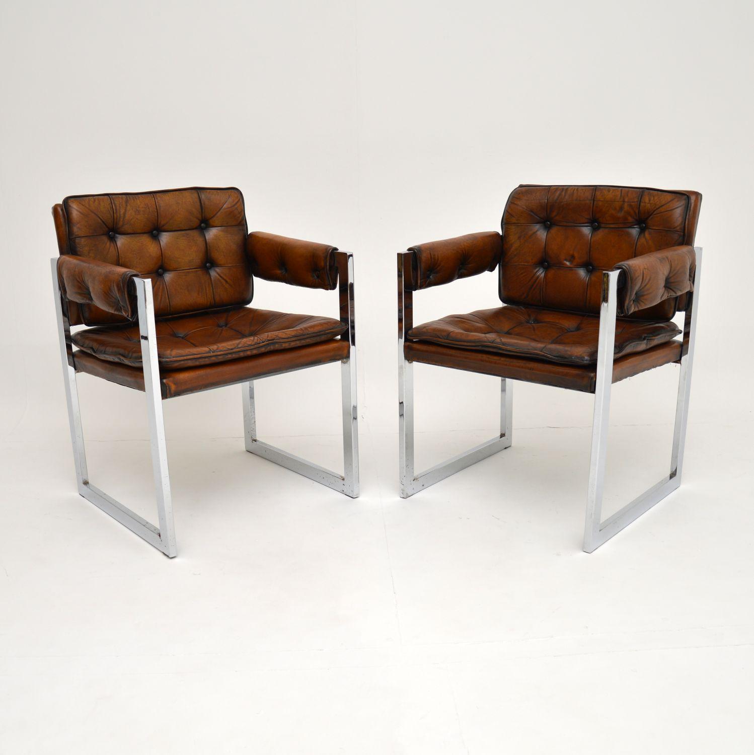 Pair of Vintage Leather & Chrome Armchairs