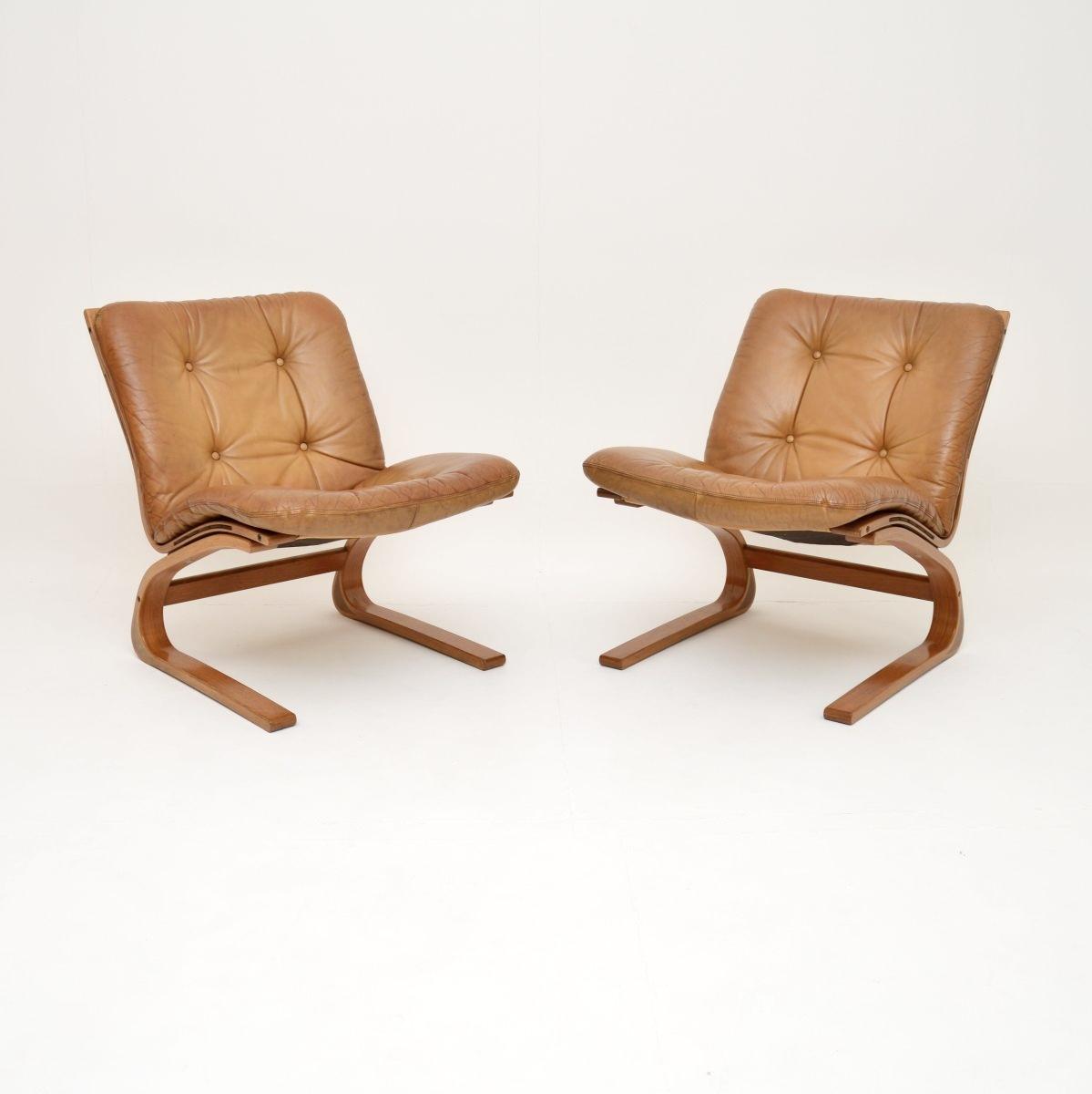 Pair of Vintage Leather Kengu Chairs by Elsa & Nordahl Solheim for Rykken (1 of 8)