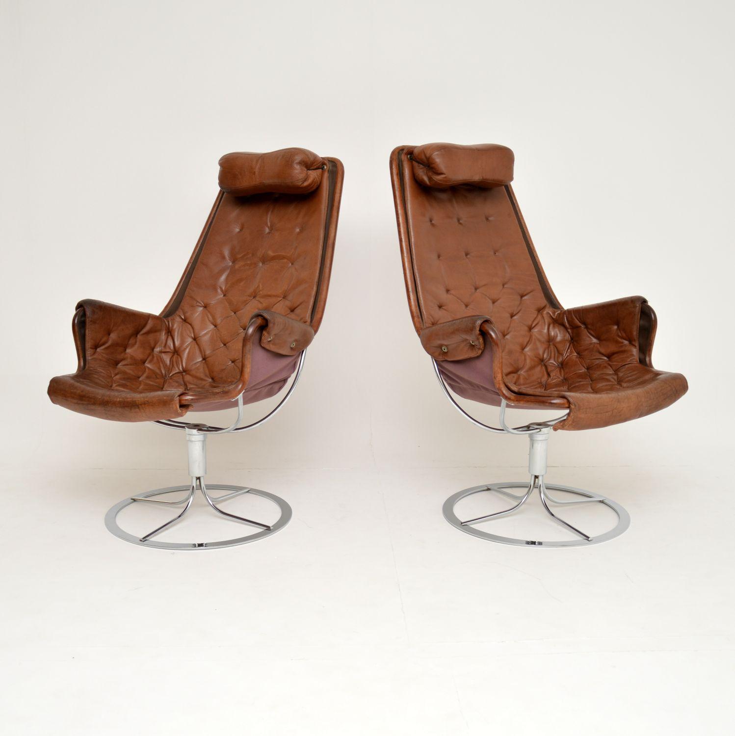 Pair of Vintage Leather Swivel 'jetson' Armchairs by Bruno Mathsson