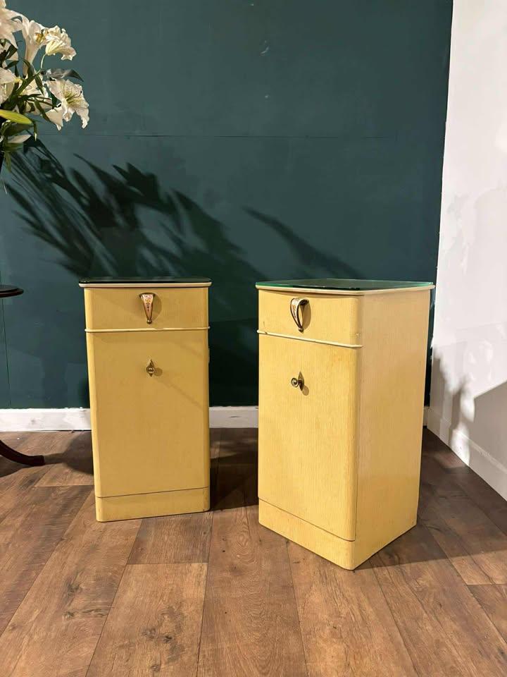 Pair of Vintage Lime Wash Veneered Bedside Cabinets Circa 1950