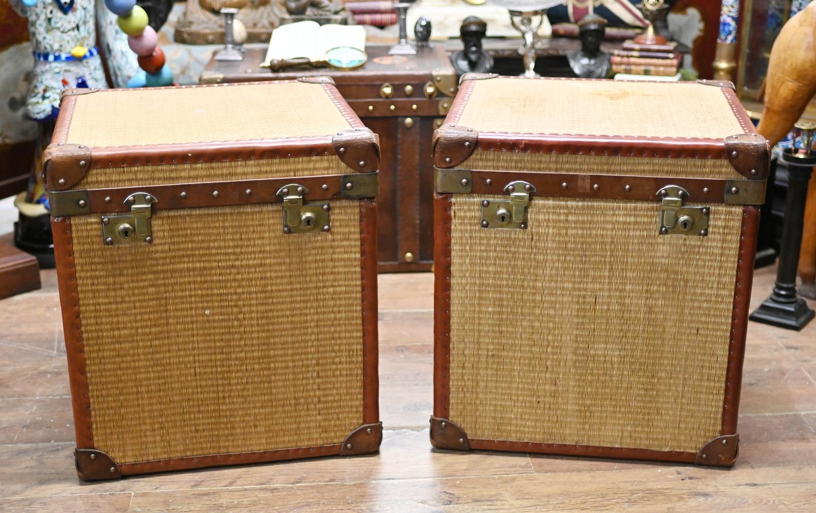Pair of Vintage Luggage Trunks Reed Steamer Case Table