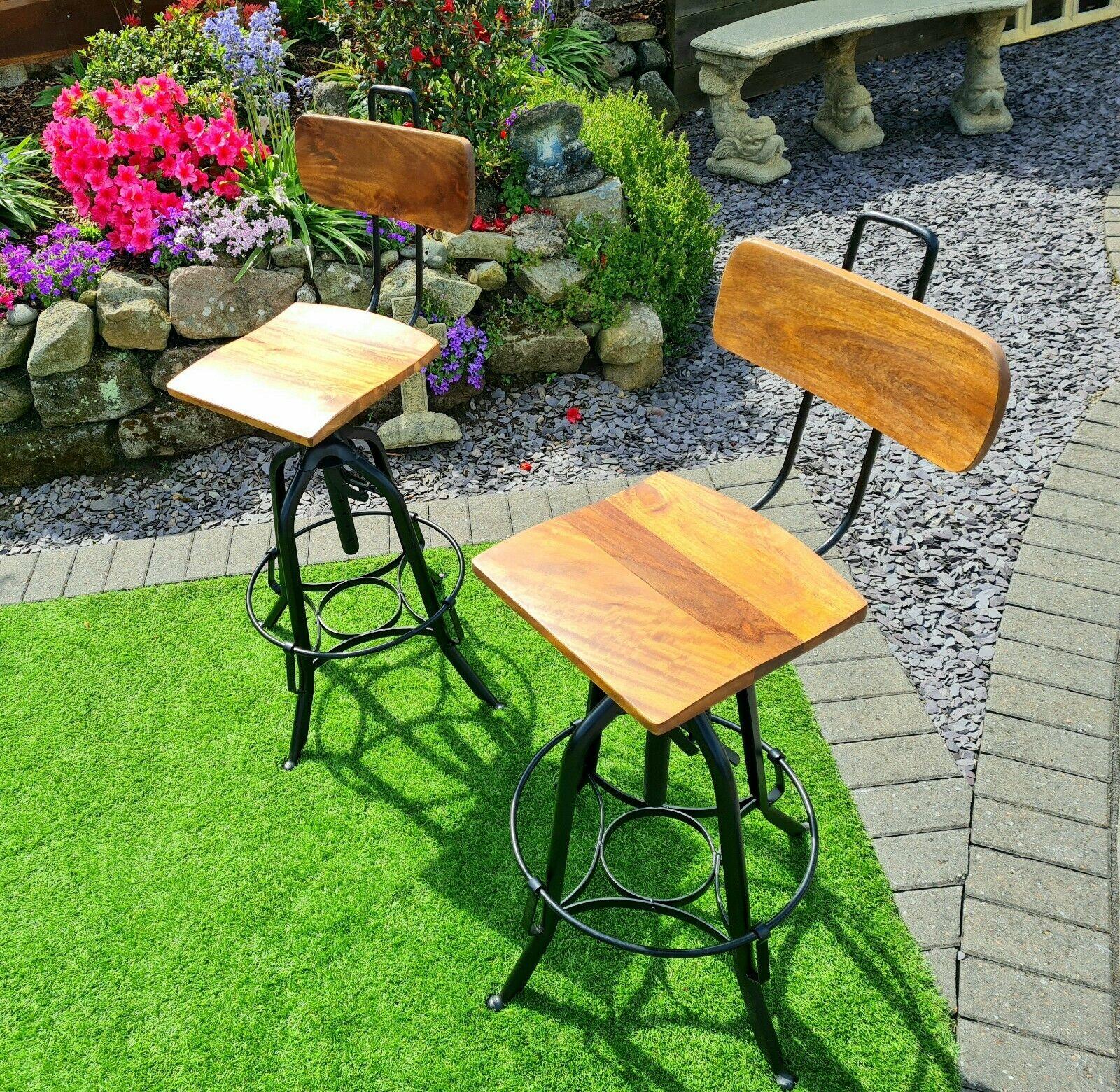 This Pair of Vintage Mango Wood Bar Stool is located in Cheshire, United Kingdom