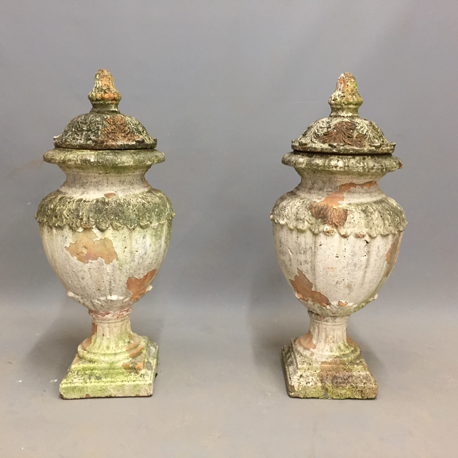 Pair of Vintage Painted Terracotta Urns c.1950 (1 of 4)