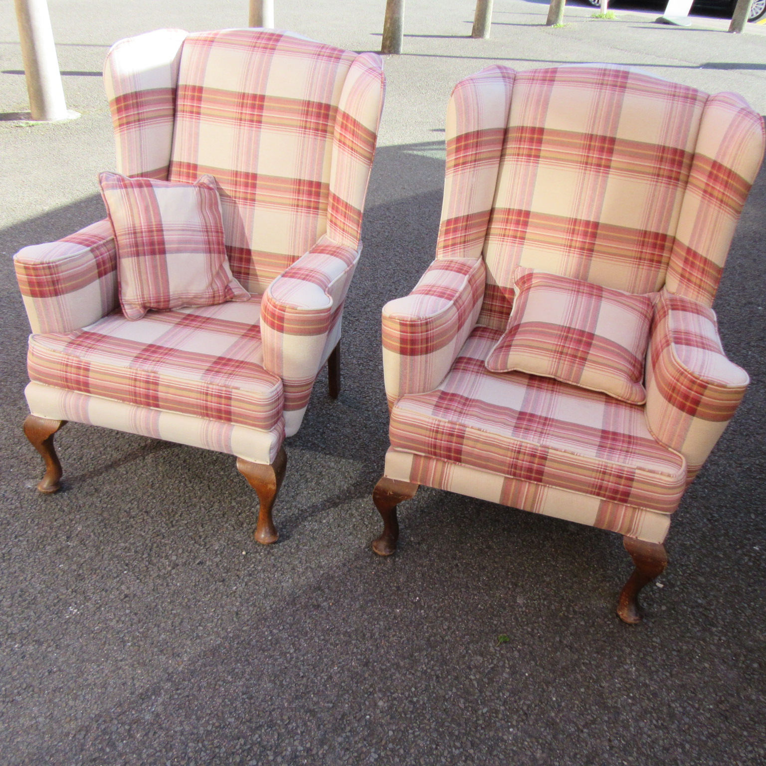 Pair of Vintage Queen Anne Style Wing Armchairs
