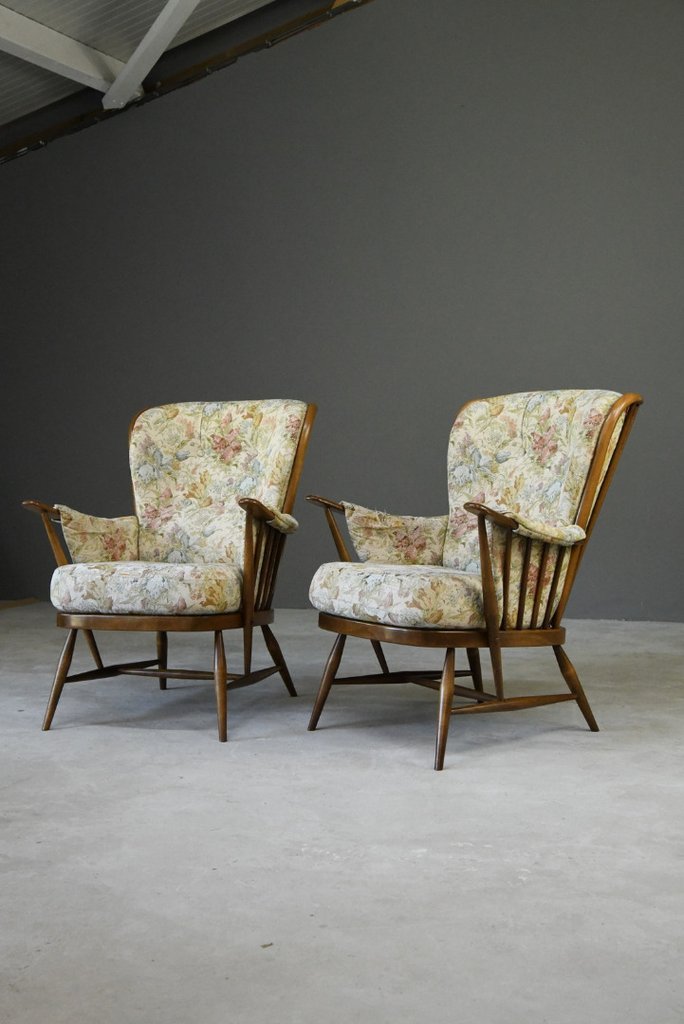 Pair of Vintage Retro Ercol Armchairs Chairs