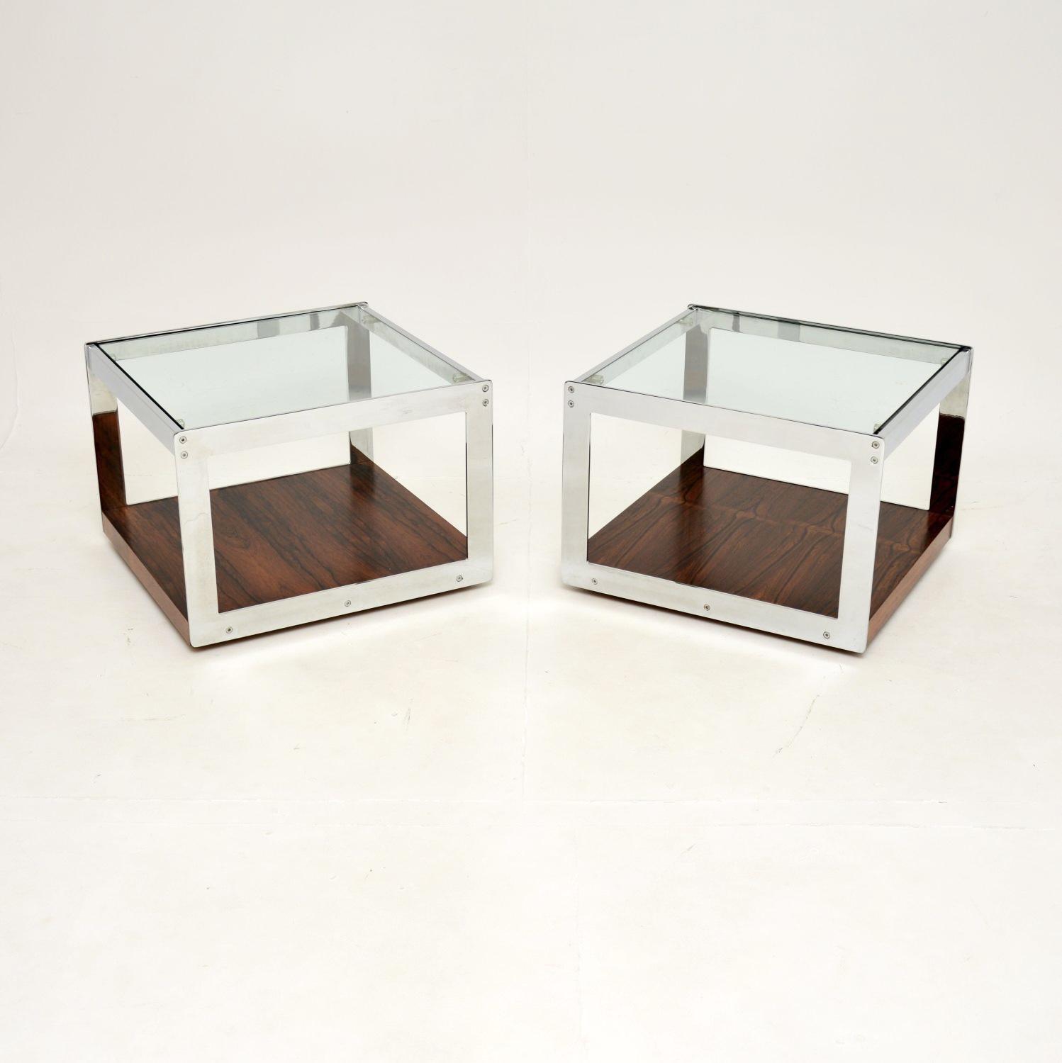 Pair of Vintage Rosewood & Chrome Side Tables by Merrow Associates