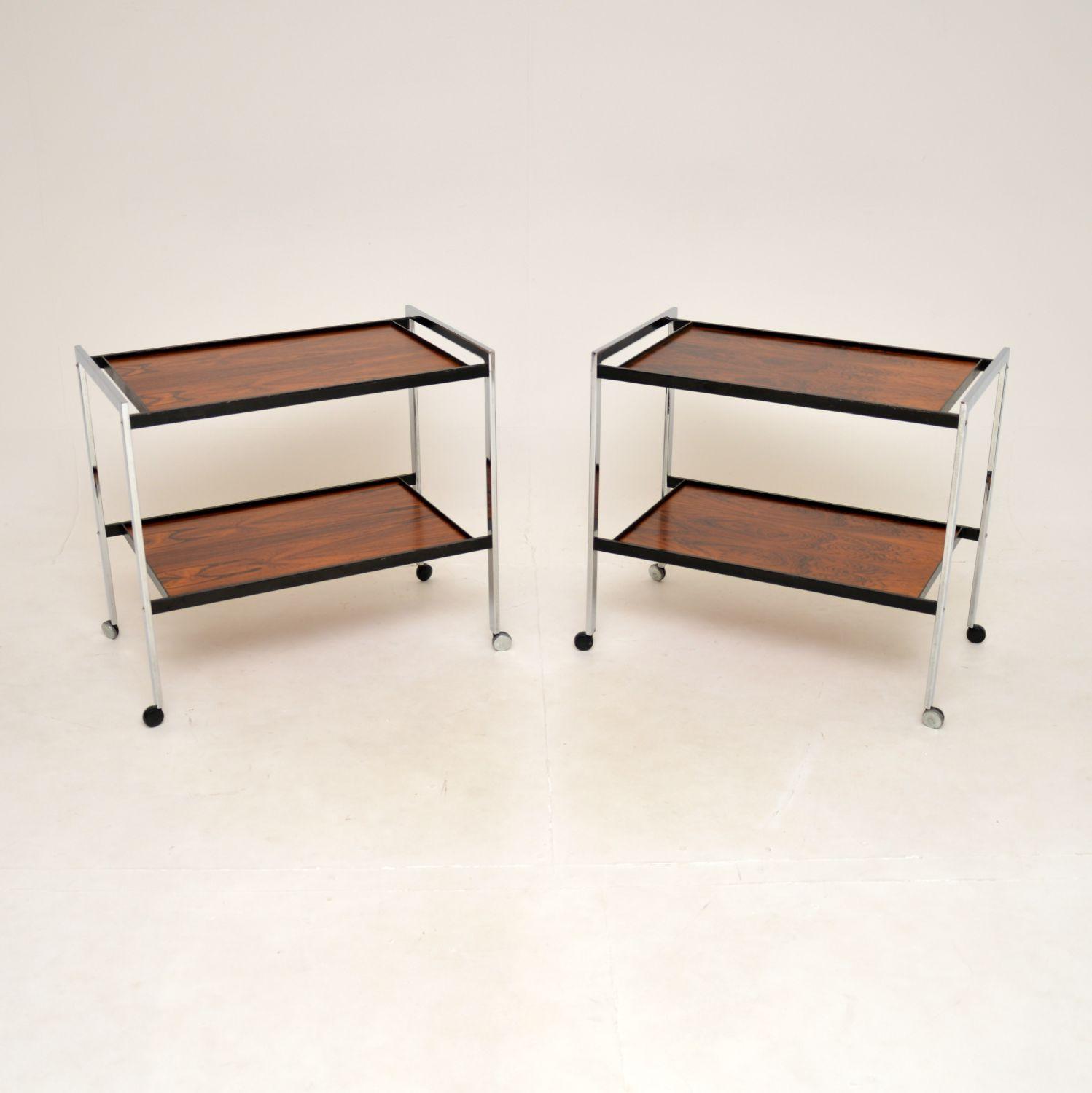 Pair of Vintage Rosewood & Chrome Side Tables / Drinks Trolleys