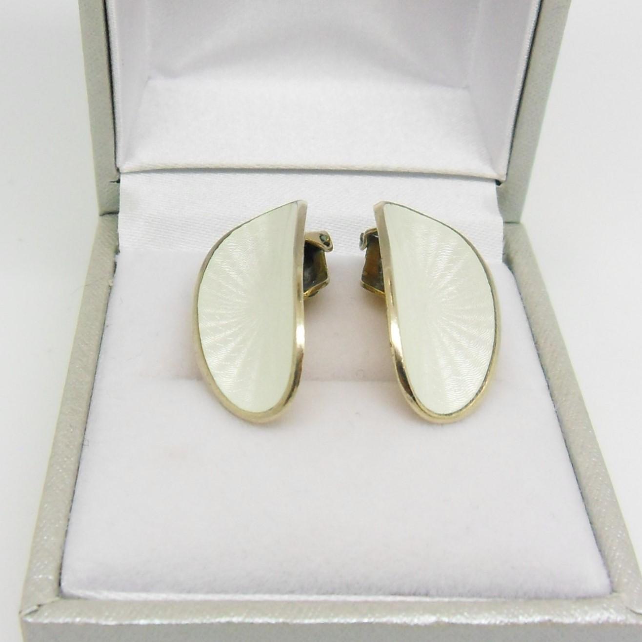 Pair of Vintage Silver Gilt White Enamel Clip Earrings
