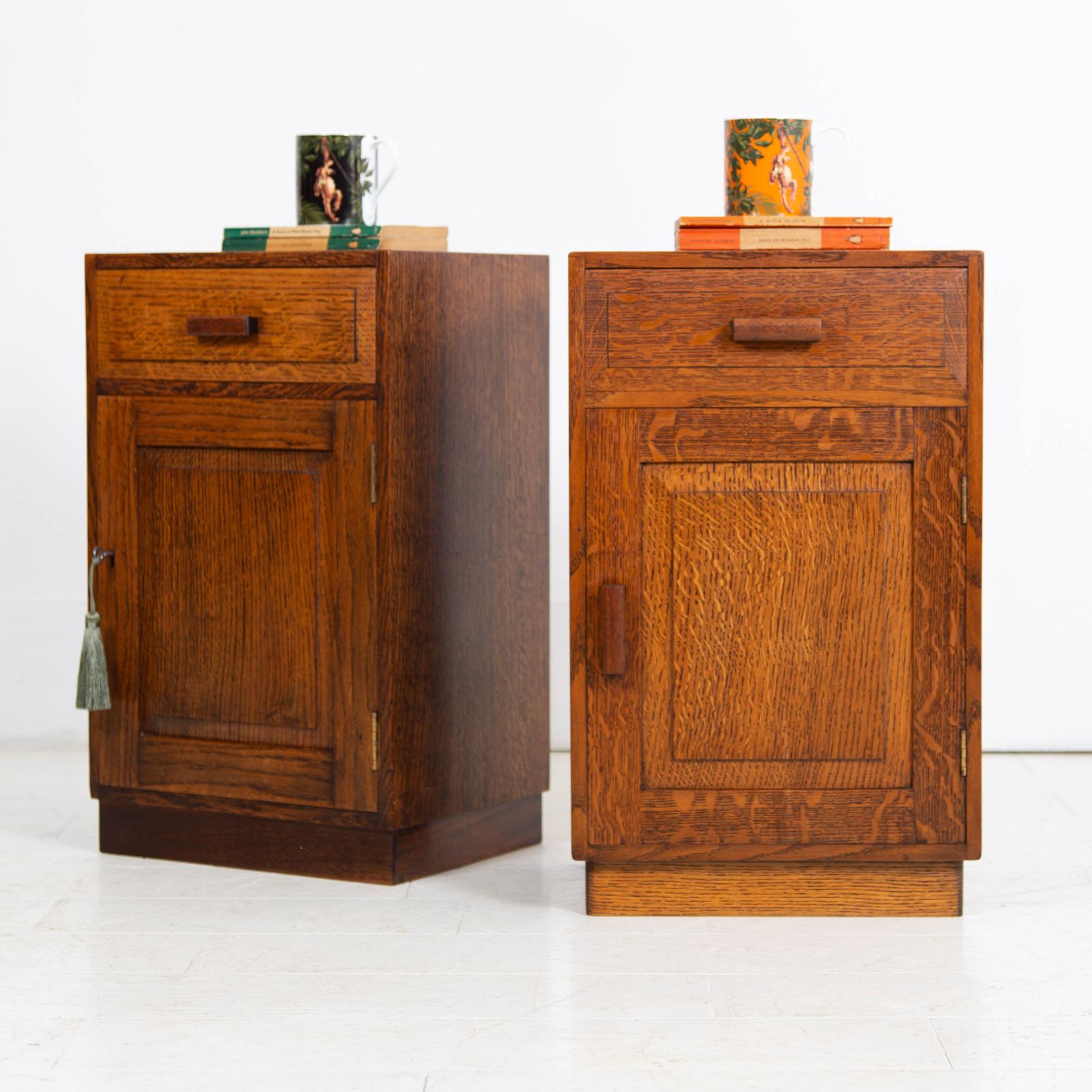 Pair of Vintage Solid Oak Bedside Side Cabinets C1930