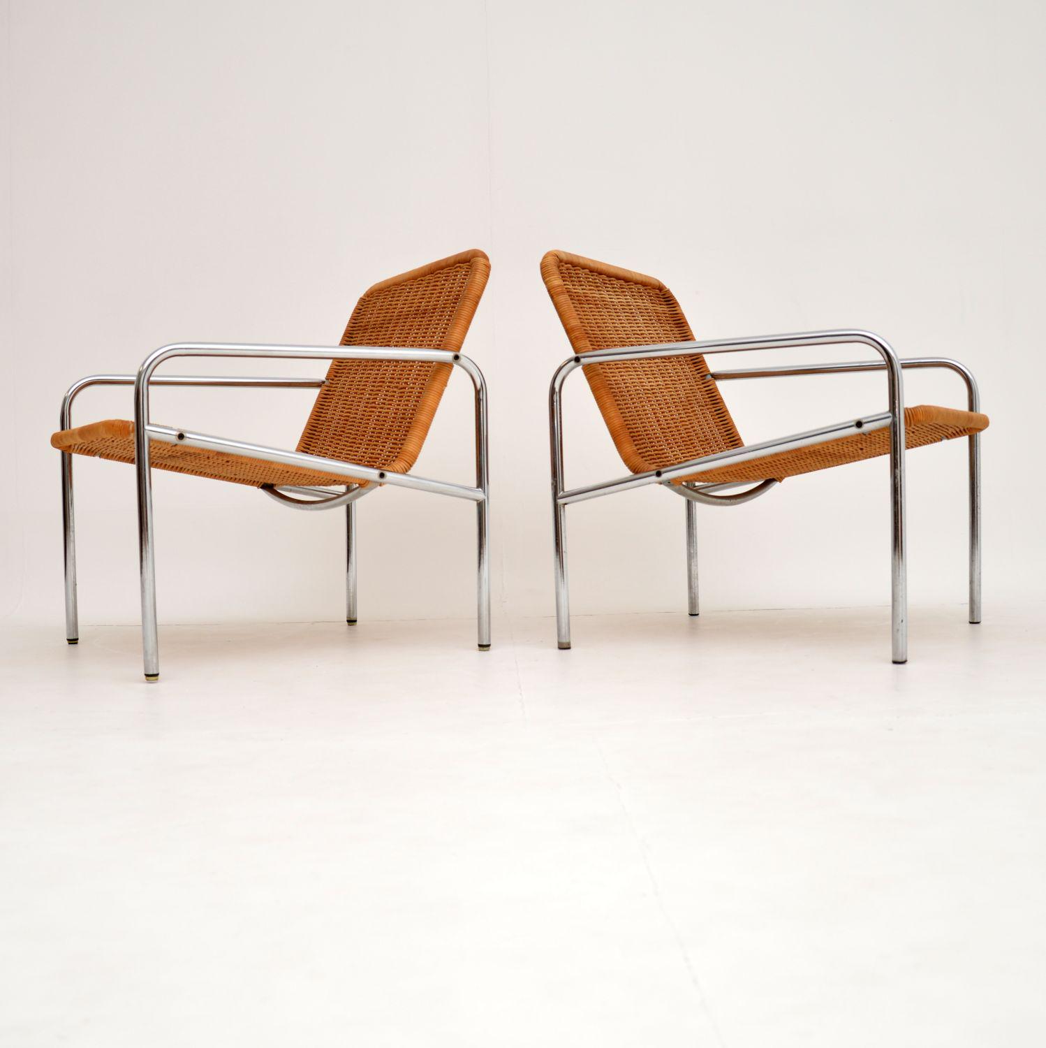 Pair of Vintage Steel & Rattan Armchairs by Dirk Van Sliedrecht