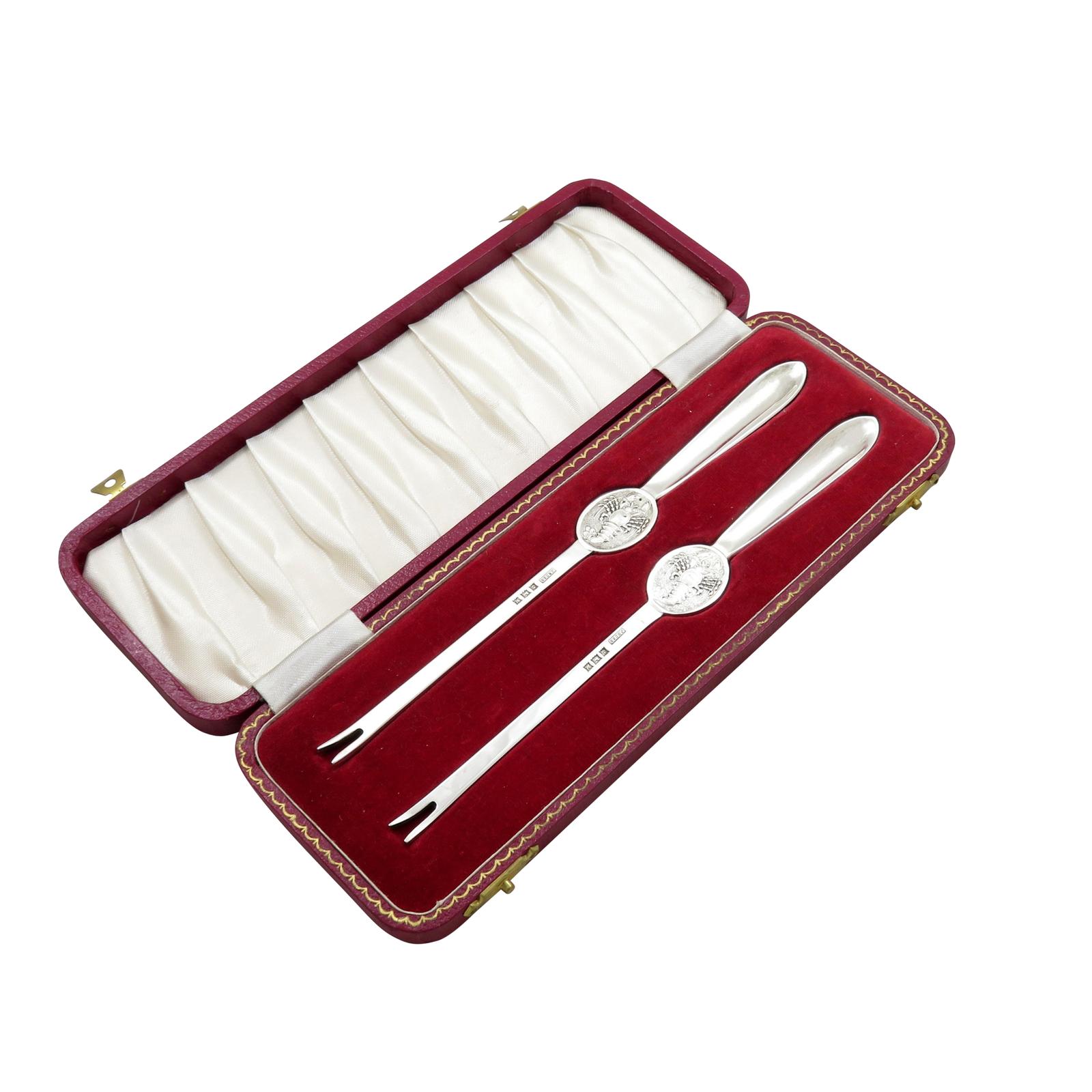 Pair of Vintage Sterling Silver Lobster Picks in Case 1961