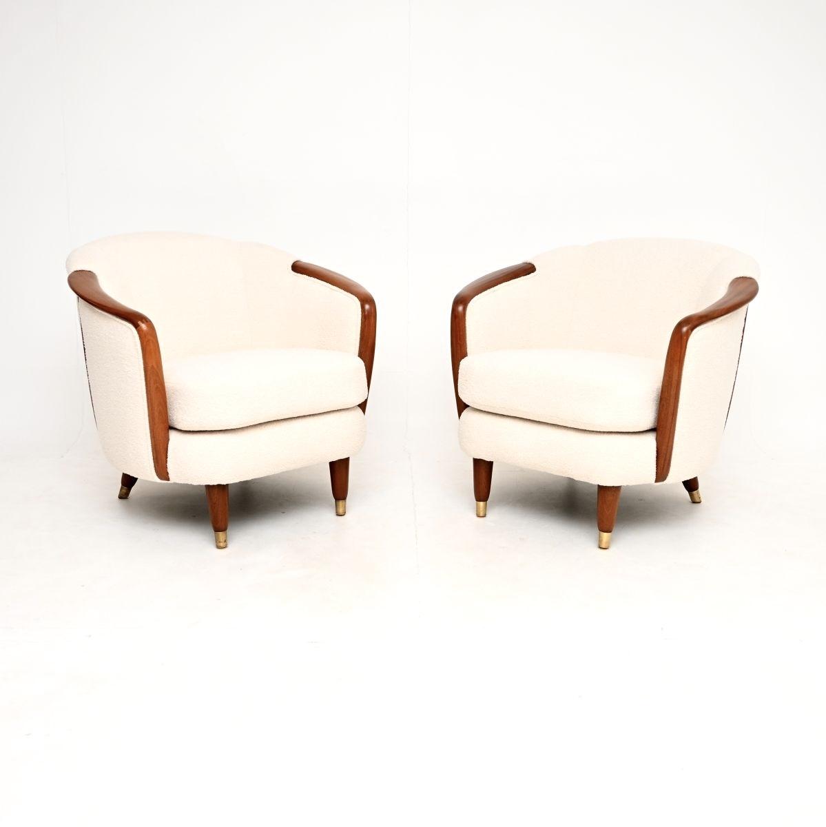A stunning pair of vintage Swedish mahogany armchairs. They were recently imported from Sweden, they date from around the 1950s.