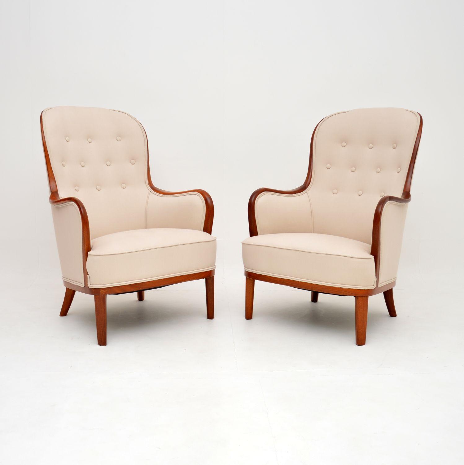 Pair of Vintage Swedish Mahogany Armchairs by Carl Malmsten